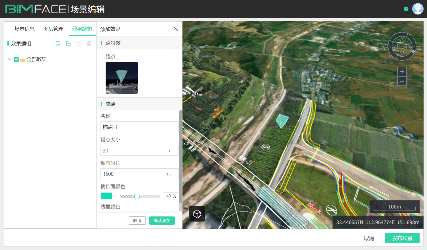 - 球体场景编辑中,新增效果编辑模块,支持基于简单交互在球体场景中添加锚点特效,场景发布后效果数据将一并保存,场景预览时也支持对添加的效果进行显隐控制。